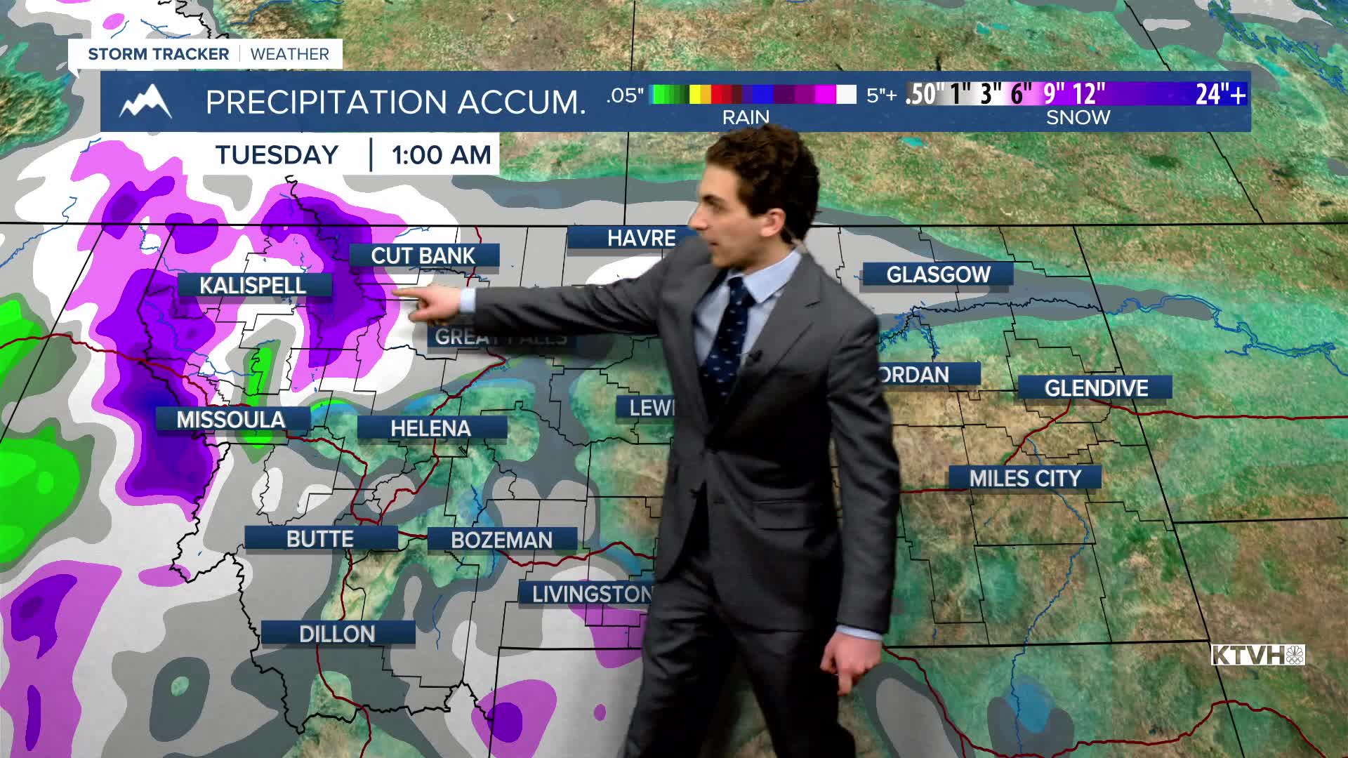 MONDAY, FEBRUARY 9TH: Heavy mountain snow will return to the Continental Divide and the mountains of western Montana. At least some light snow is expected in the lower elevations. This could cause some travel issues on Monday morning. High temperatures will only reach the upper 30s to low 40s