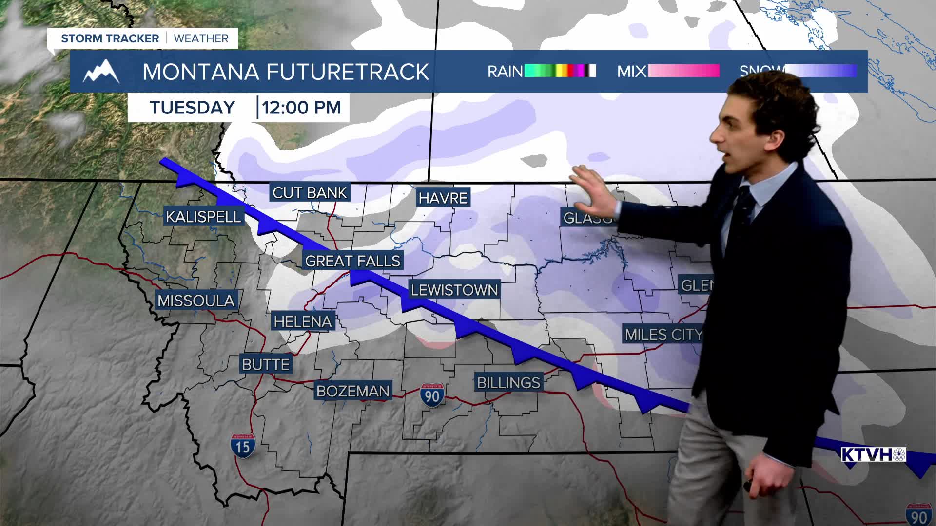 TUESDAY, JANUARY 20TH: The cold front will come through the Great Falls and Helena areas in the morning. This will bring some scattered snow showers with it. The snow will be light and won't accumulate much. Expect less than an inch. Highs will reach the 20s and 30s.