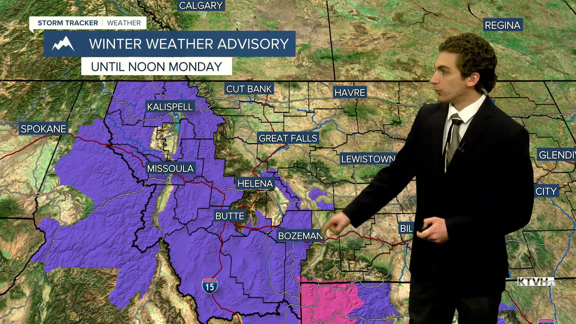 A WINTER WEATHER ADVISORY continues for Highway 12 Garrison to Elliston, Homestake Pass, Georgetown Lake, MacDonald Pass, and Butte until noon Monday