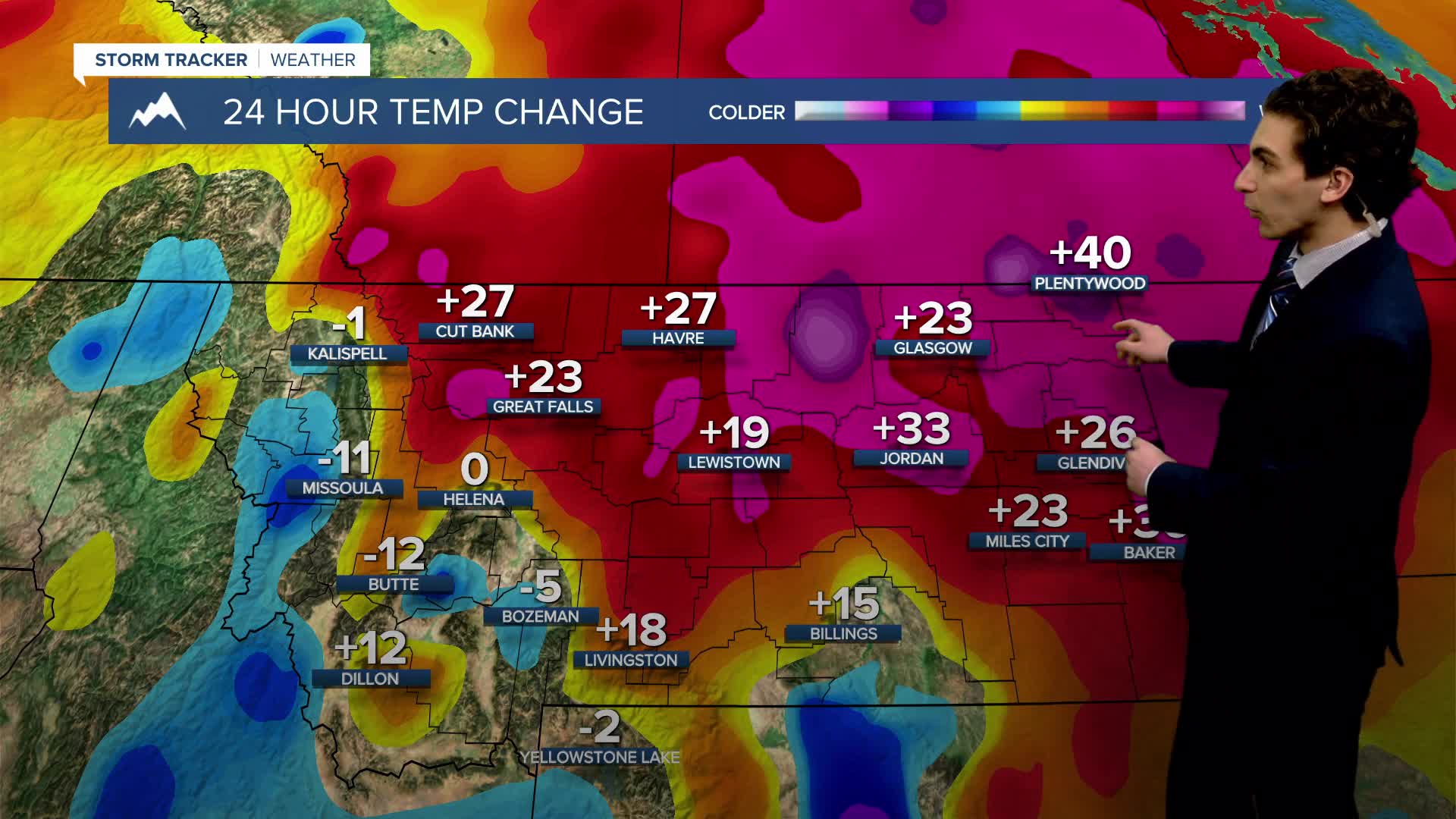 TUESDAY, JANUARY 27TH: Temperatures continue to warm, with most areas west of Havre warming into the 40s. Dry conditions with some passing clouds are expected. Winds will be around 10-20 MPH in the north-central plains.