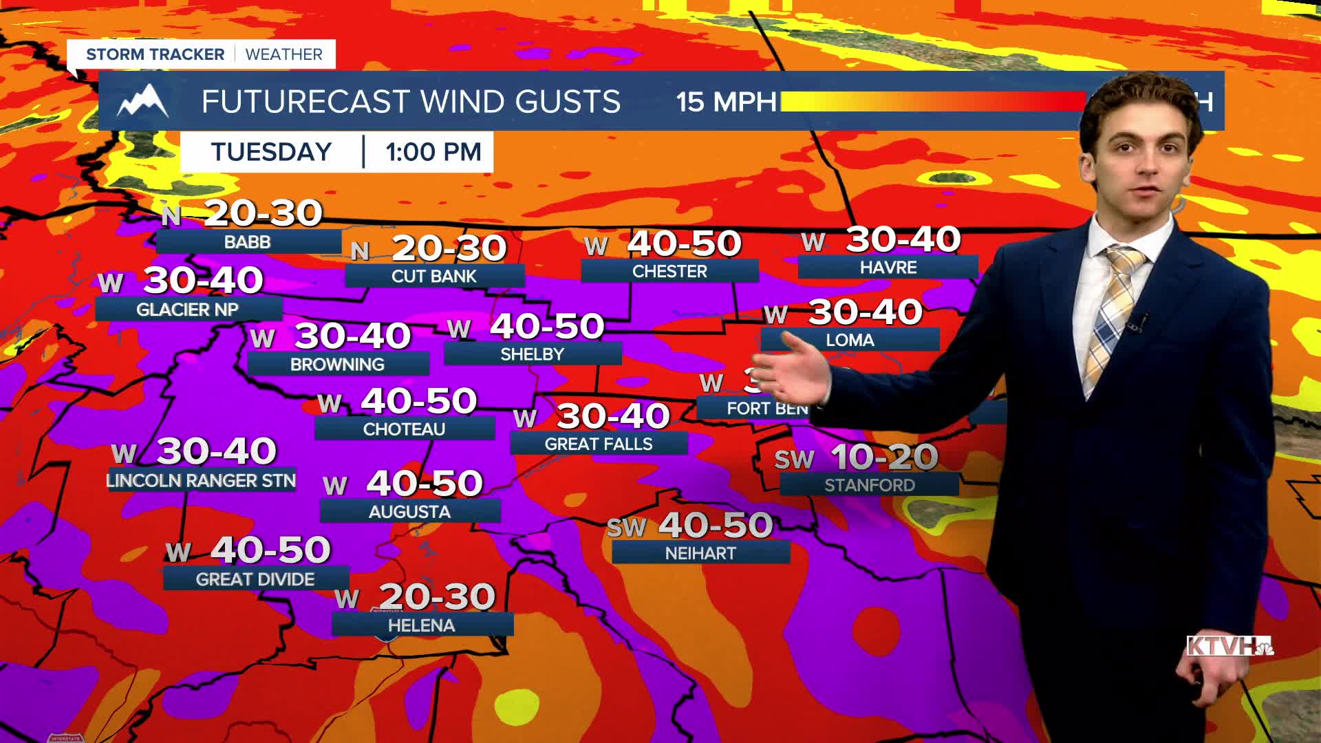 TUESDAY, APRIL 7TH: A strong wind event is set to unfold this afternoon through most of the state. A low-pressure system with an associated cold front will move just north of our state. This, combined with strong mid-level winds, will enhance surface-level winds. Gusts could reach up to 70 MPH in lower elevations, with the Rocky Mountain Front gusting to near 90 MPH at times.