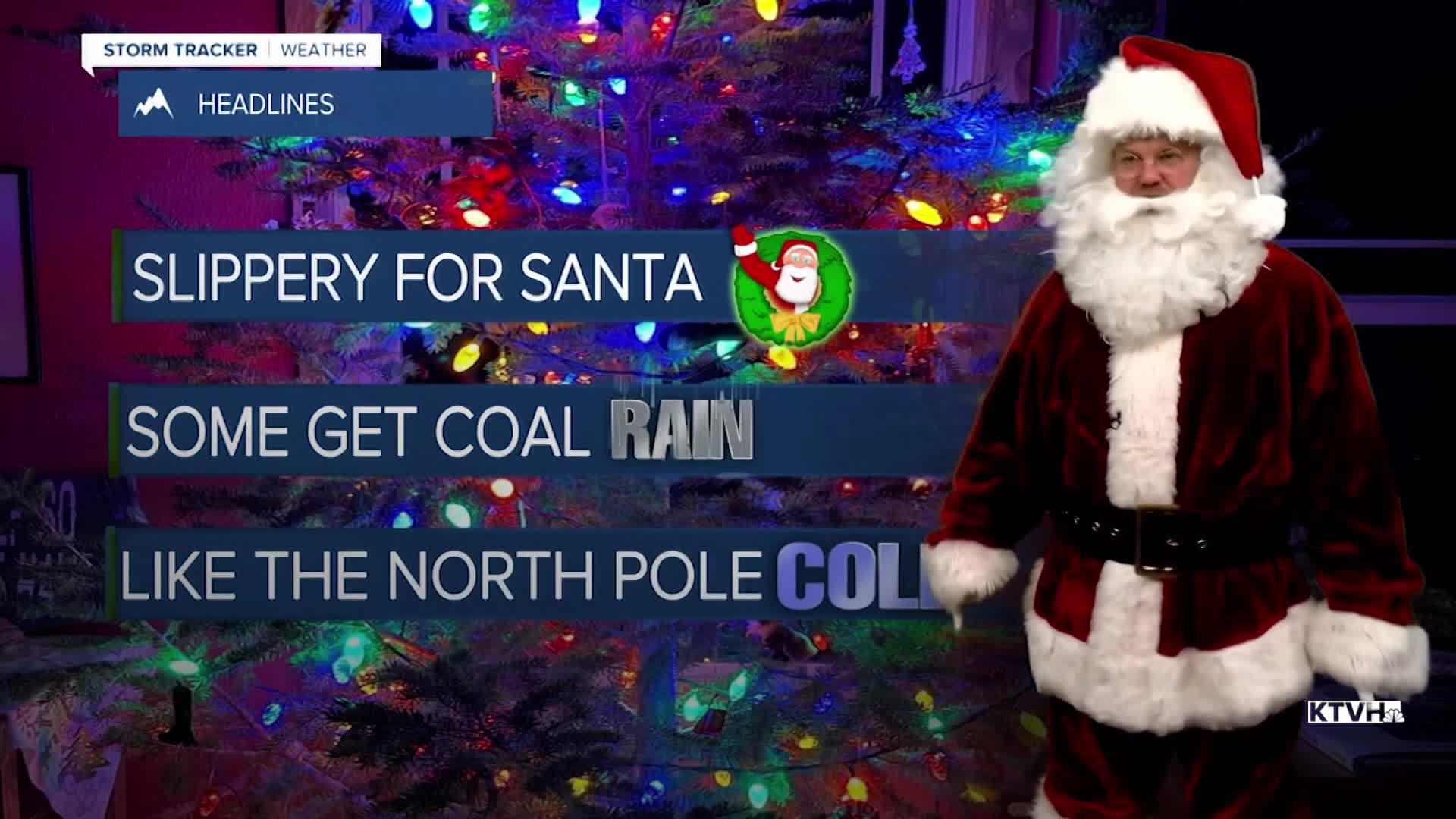 Santa will certainly need Rudolph the Red Nose Raindeer to deliver presents, but Christmas Day will be pleasant and mild. It does not look like many places in the lower elevations will have a white Christmas, but there will be some freezing rain and ice instead. After dark on Christmas Eve into Christmas morning, an area of light rain, some freezing rain, and some snow will move through the state. When you wake up on Christmas Day there may be a coating of ice and snow, or just wet ground. Areas of north-central Montana could have a light accumulation of ice making it very, very slippery. Please be careful. After some morning freezing rain, Christmas Day will turn partly cloudy with mild temperatures in the 30s and 40s and even a few 50s. Friday will be mild and mostly cloudy but a strong cold front will dive south from Canada through Friday night into Saturday morning. A period of snow will accompany the front along with colder temperatures. Saturday will turn partly cloudy with highs in the 0s and 10s north, 20s and 30s south. High pressure will move in on Sunday with mostly sunny skies. At this time, the valleys will likely form inversions and be colder and calm. The plains will see warmer temperatures with stronger wind. This pattern should continue through the beginning of the week.