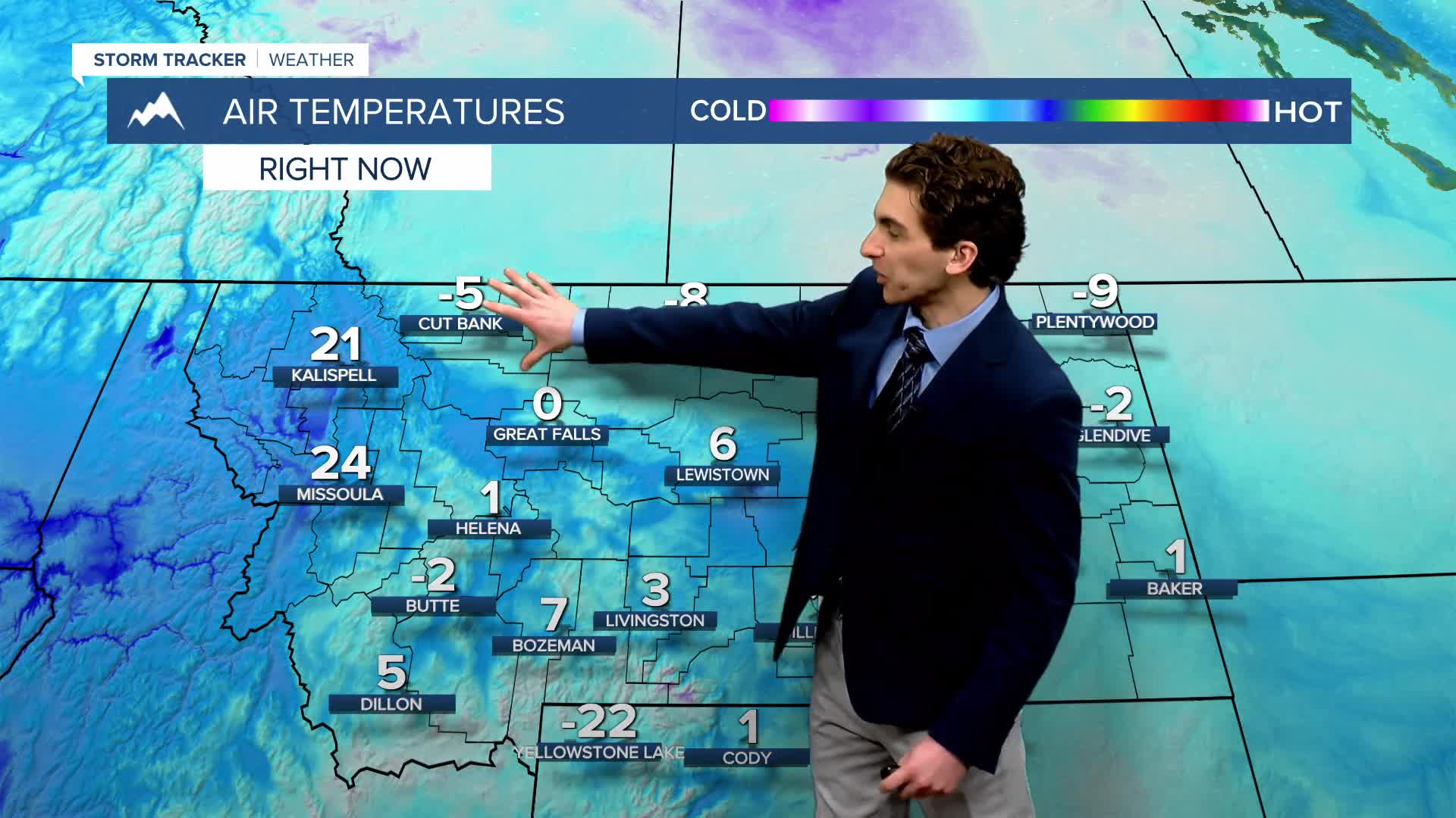 FRIDAY, FEBRUARY 20TH: Temperatures will begin to warm slightly today, but not by much. Morning lowshave been below zero for many. Wind chills in portions of north-central Montana are around the -20s to -30s. Highs will reach the teens and 20s. More light snow will come through western Montana this morning. Accumulation should be around an inch in the mountains, with flurries in the lower elevations.