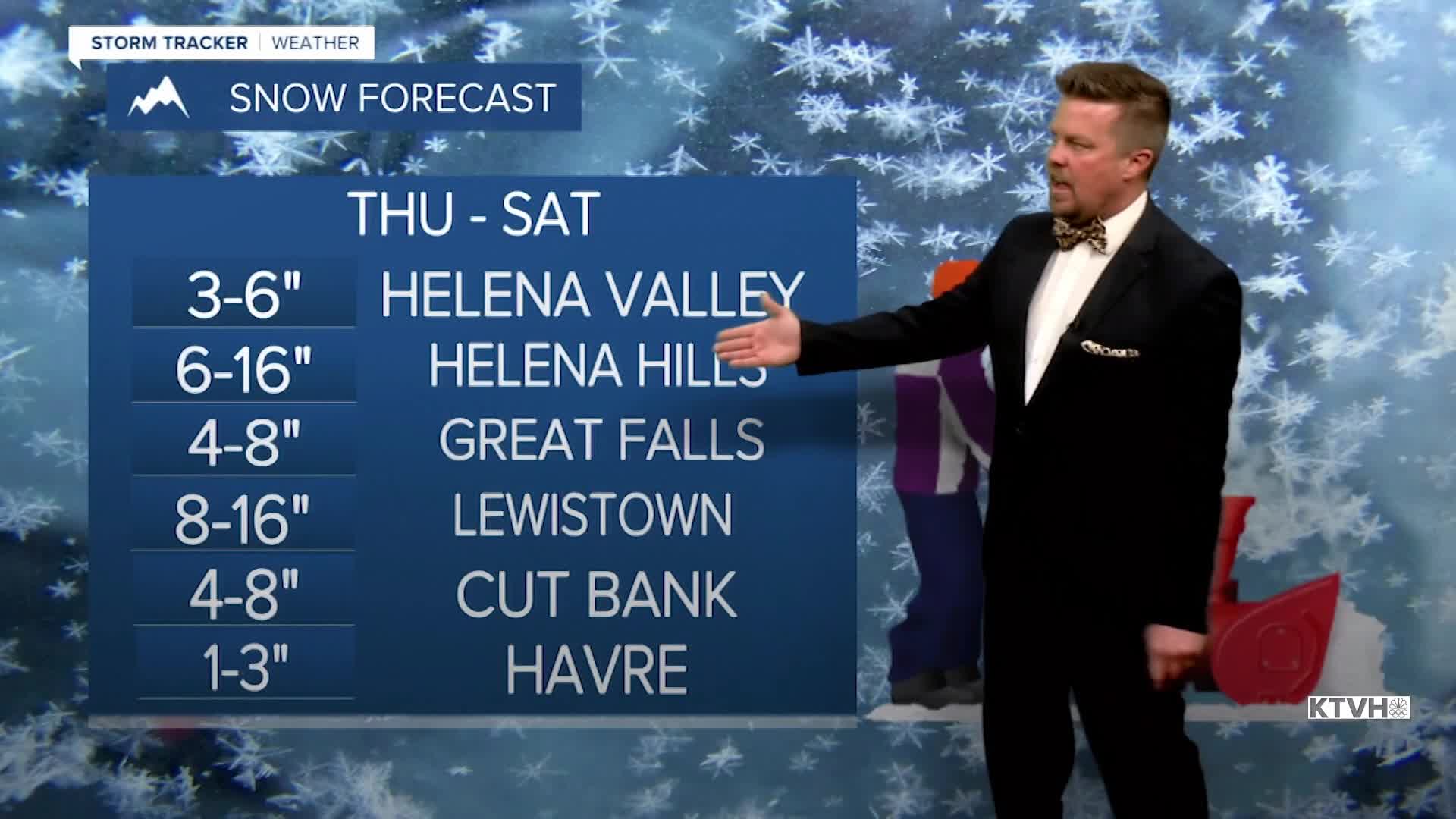 The worst of this storm will produce wind up to 95mph along the Rocky Mountain Front and snow of up to 48" in the mountains. The majority of the state will not see those conditions, but everywhere will have powerful wind and eventually some snow. The first part of this storm will be the wicked wind with the strongest gusts Thursday morning into early Thursday afternoon. The wind will slowly ease down through Thursday evening. Thursday will have some highs in the 50s and 60s south, with 30s and 40s north. A cold front will move south with the most powerful wind and some rain changing to snow through the morning hours. The mountains will continue to see very heavy snow through the day, with blizzard conditions creating whiteouts for periods of time. Snow will turn steady around the Helena area through the day. Friday will be cloudy with areas of snow continuing around Helena and redeveloping near Great Falls. The snow will slowly accumulate throughout the day. Heavy snow will continue in the mountains. The wind will be much lighter. A cold front will move south through the state on Friday night into Saturday with all areas picking up snow. Saturday will be a wintry day with highs in the 10s and 20s, and wind of up to 20-30mph blowing around the snow. Several inches will fall in the lower elevations. By this time, several FEET of snow will accumulate in the mountains. Snow will come to and end through Saturday night. A few lingering snow showers are possible on Sunday. Sunday night into Monday, a warm front will move through with some snow initially, followed by rising snow levels through Monday. A major warmup is on the way and temperatures could warm to between 60-70 degrees by St. Patrick's Day. Wild, wild weather.