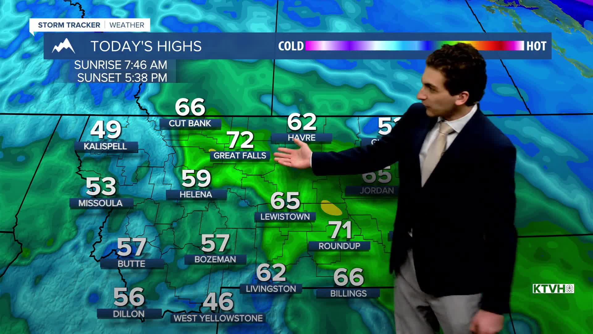 Most of the plains of central Montana will reach the upper 60s and low 70s under sunny skies.