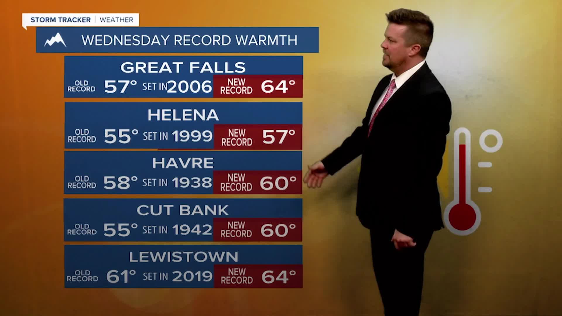 Wednesday WOW! Record highs were set across much of Montana as highs soared well above average into the 50s and 60s. Fort Benton even hit 70! A big ridge of high pressure across western North America has delivered unusual warm and dry conditions across much of Montana. Much of the West has been warm and dry so far this winter. However, there are indications of more typical January weather returning by late next week. And after Wednesday's records, the temperatures will cool back closer to average starting Thursday. Wednesday will start out mostly sunny with a strong wind across the plains. Highs will A weak cold front will move through the state on Thursday. Skies will be partly cloudy and it will turn windy and somewhat colder. A couple of snow showers are possible along the front with little to no accumulation. Highs will range from the 30s in northeast Montana to the 40s farther south and west. The combination of strong wind and colder temperatures will be felt more across the eastern part of the state. High pressure will move in for Friday with mostly sunny and slightly cooler highs in the 20s to near 40. It's likely that most of Montana will be mostly sunny, closer to average temperatures, with wind across the plains through Martin Luther King Jr. holiday weekend. It is possible that a return to more typical snowy and cold weather will occur later next week around January 22nd or 23rd.