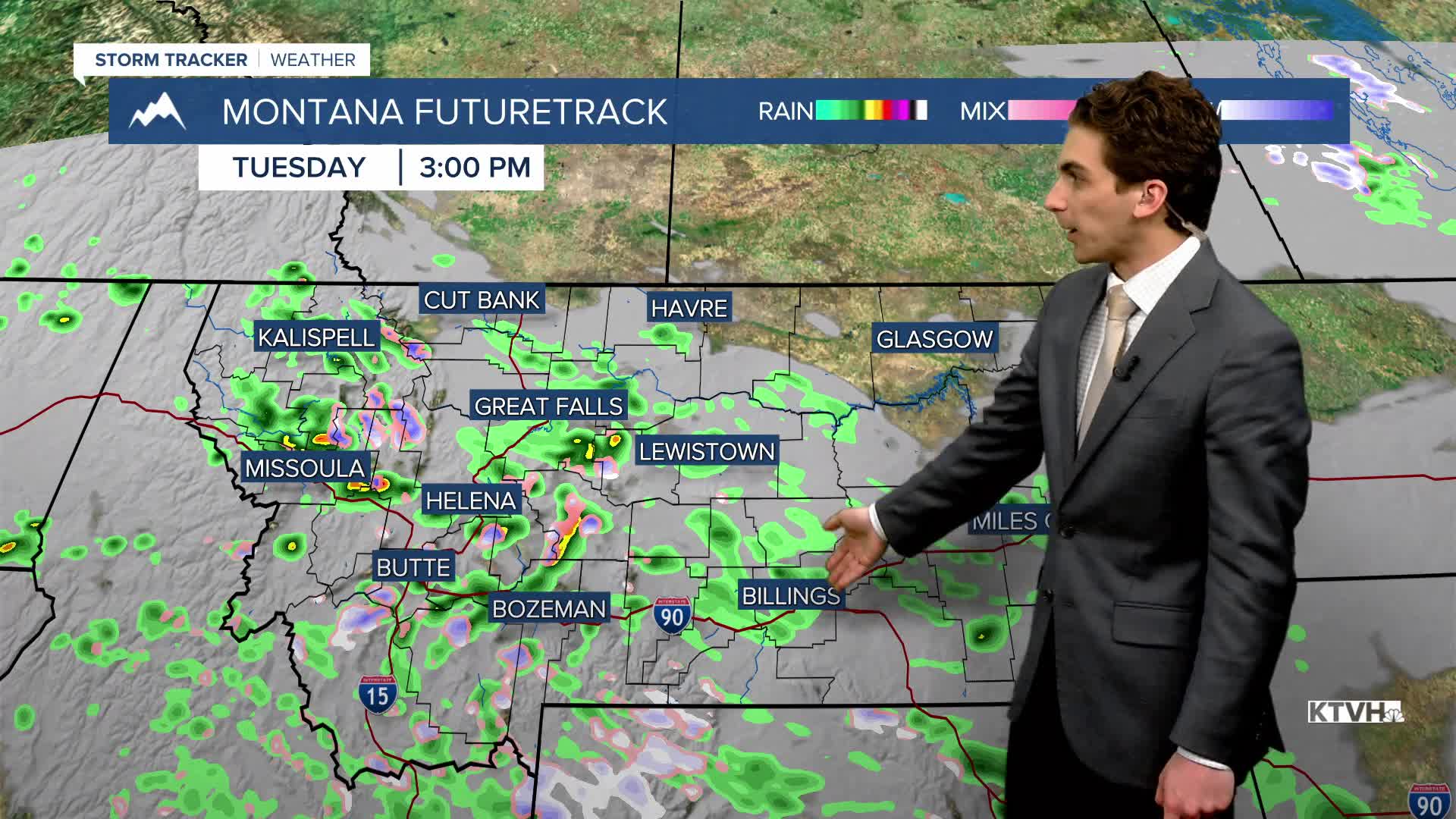TUESDAY, APRIL 28TH: Numerous showers and possibly a few thunderstorms will develop throughout a majority of Montana this afternoon. Expect mostly rain in lower elevations, with a rain/snow mix in the mountains. High temperatures will be in the mid to upper 50s under partly to mostly cloudy skies.