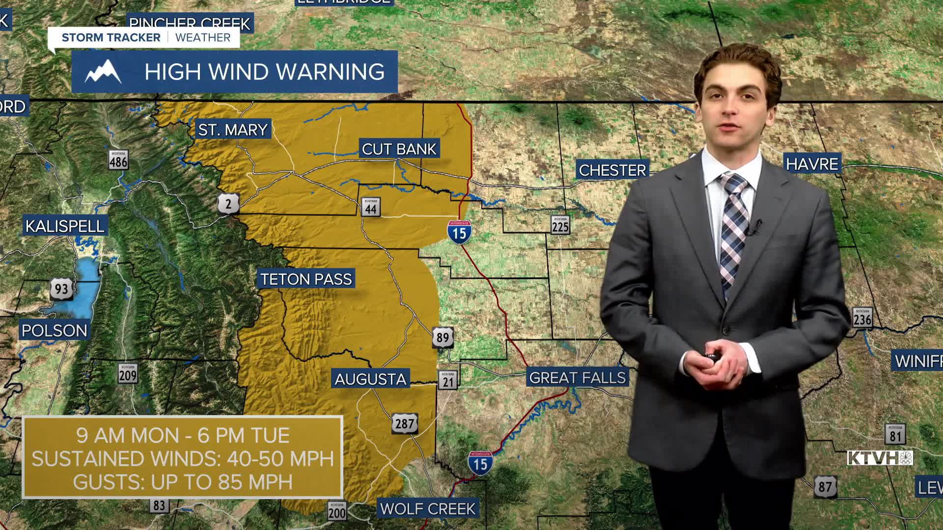 Wind gusts in north-central Montana will reach up to 85 MPH west of I-15 by the afternoon. Gusts for the rest of the area will reach up to 50 MPH. The Helena area will not be as windy this time around. Winds will be around 10-25 MPH this afternoon. It's important to note that this week's wind is not expected to be as intense as last Sunday and Thursday.