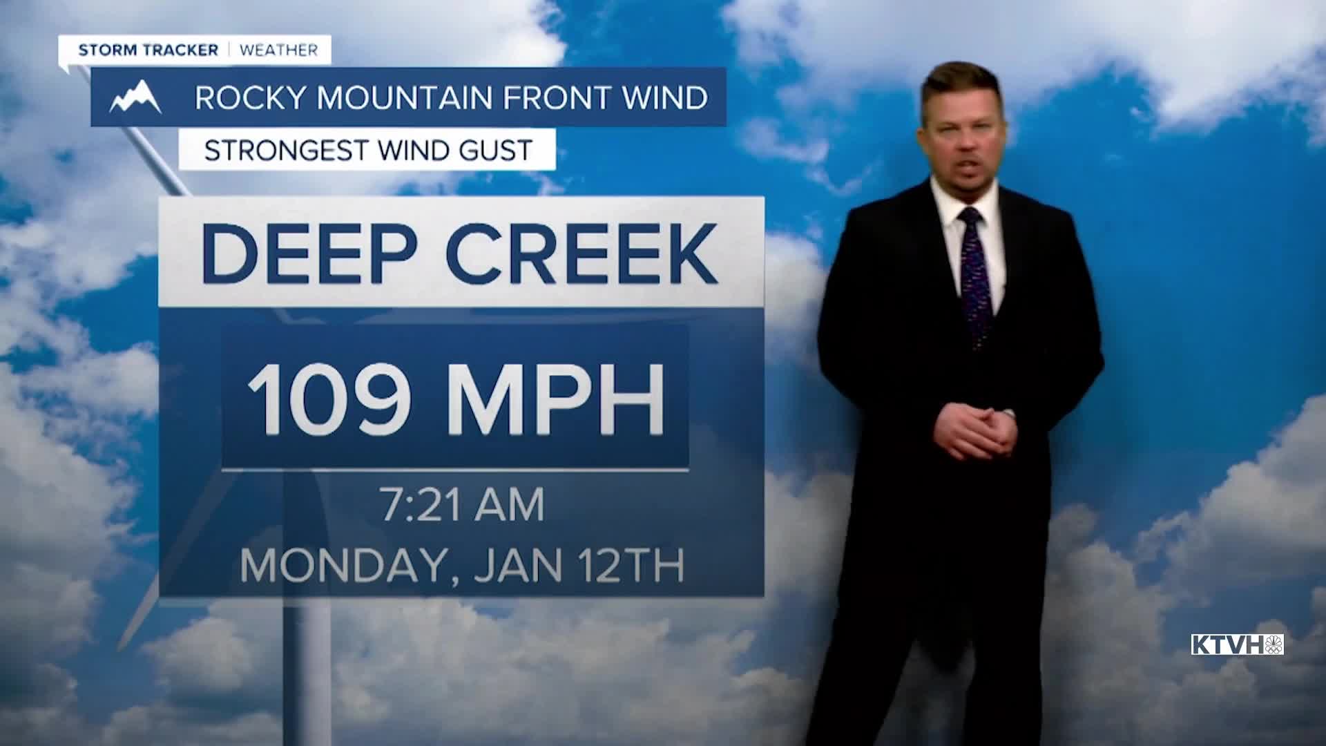 Holy cow! No, we're not at Shellie's Country Cafe. Powerful wind and near record breaking warmth in January continues. 109mph wind gust near East Glacier on Monday morning was stronger than any gust in the state in 2025, including that devastating wind storm in December. And on the warm side of the story, Helena tied a record high of 57 with several other towns getting within a few degrees of their records. This pattern will continue through the week, this MLK holiday weekend, and into next week. However, there are indications of more typical January weather returning by late next week. Tuesday will be another mild to warm day with highs in the 40s and 50s. A few showers of rain are possible in the morning, with snow confined to above about 7000'. Skies will be mostly cloudy through the morning with partial clearing through the afternoon. It will be windy again but not as windy, some gusts could top 40mph. Wednesday will start out mostly sunny with a strong wind across the plains. Highs will again be well above average, in the 50s and low 60s. Some valley locations will hold in the 40s. A few record highs could be broken. A weak cold front will move through the state on Thursday. Skies will be partly cloudy and it will turn windy and somewhat colder. Highs will range from the 30s in northeast Montana to the 50s farther south and west. A few isolated snow showers are possible in the central mountains and across the plains of eastern Montana. The combination of strong wind and colder temperatures will be felt more across the eastern part of the state. High pressure will move in for Friday with mostly sunny and slightly cooler highs in the 30s and 40s. It's likely that most of Montana will be dry, mild, with wind across the plains through Martin Luther King Jr. holiday weekend. It is possible that a return to more typical snowy and cold weather will occur later next week around January 21st.