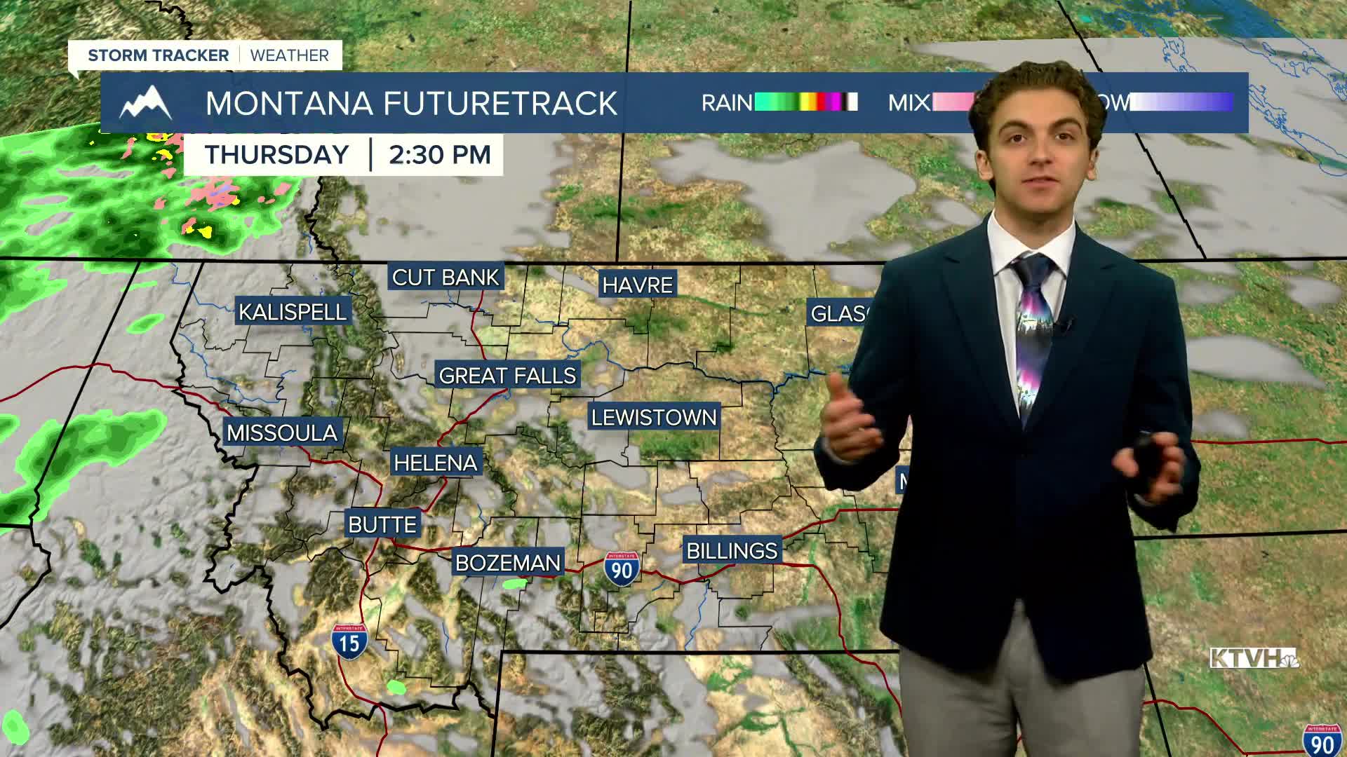 A slow-moving cold front comes in on Friday, bringing more wind, rain, and snow. Scattered showers will develop by Friday morning and stick around through most of the day. Some snow may fall near the Hi-Line Friday night. High temperatures drop into the 40s and 50s